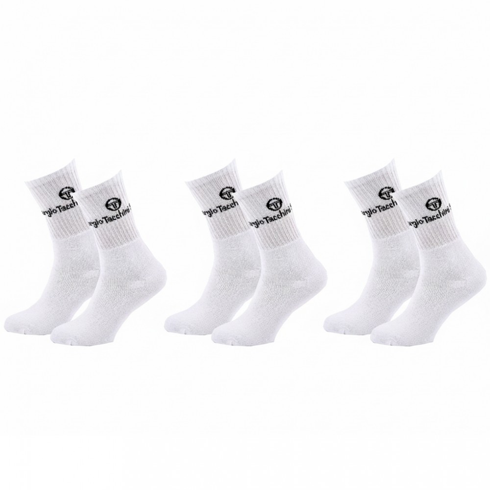 SEO MAX Chaussettes Homme Tennis Sportswear Sergio Tacchini – Pack de Chaussettes Mi-Mollet (Crew) – Coton Respirant, Confort et Maintien – Sport, Running, Fitness, Quotidien – Blanc, Noir, Assorti – Tailles 39/42, 43/46- Pack de 3 paires |