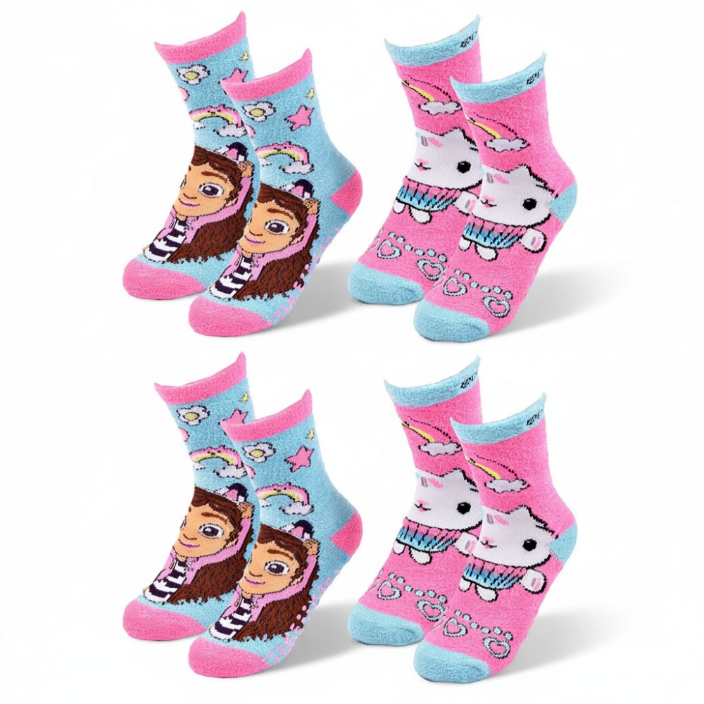 RESUME Pack 4 paires de chaussettes antidérapantes fille – Gabby’s Dollhouse | Douces, chaudes et confortables | Coton peluche | Licence officielle DreamWorks | Taille 27–35 |